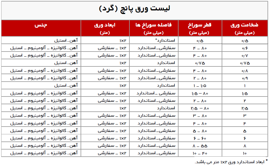 ورق پانچ طرحدار با توجه به سلیقه مشتری طراحی و تولید می شود. این ورق ها سفارشی بوده و بیشتر مصارف تزئینی دارند.